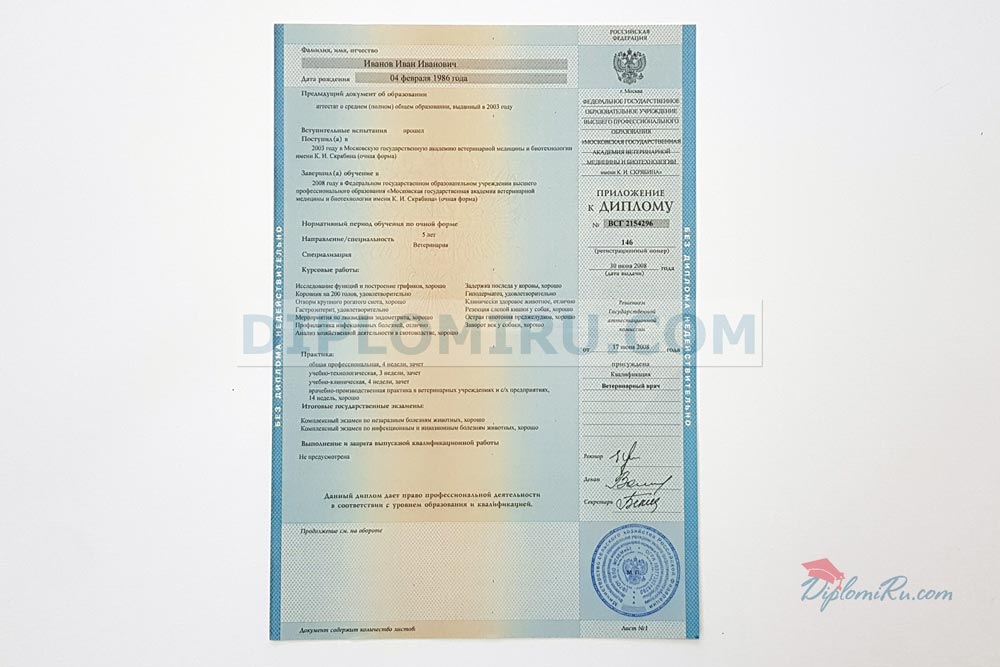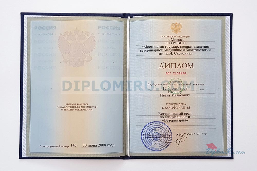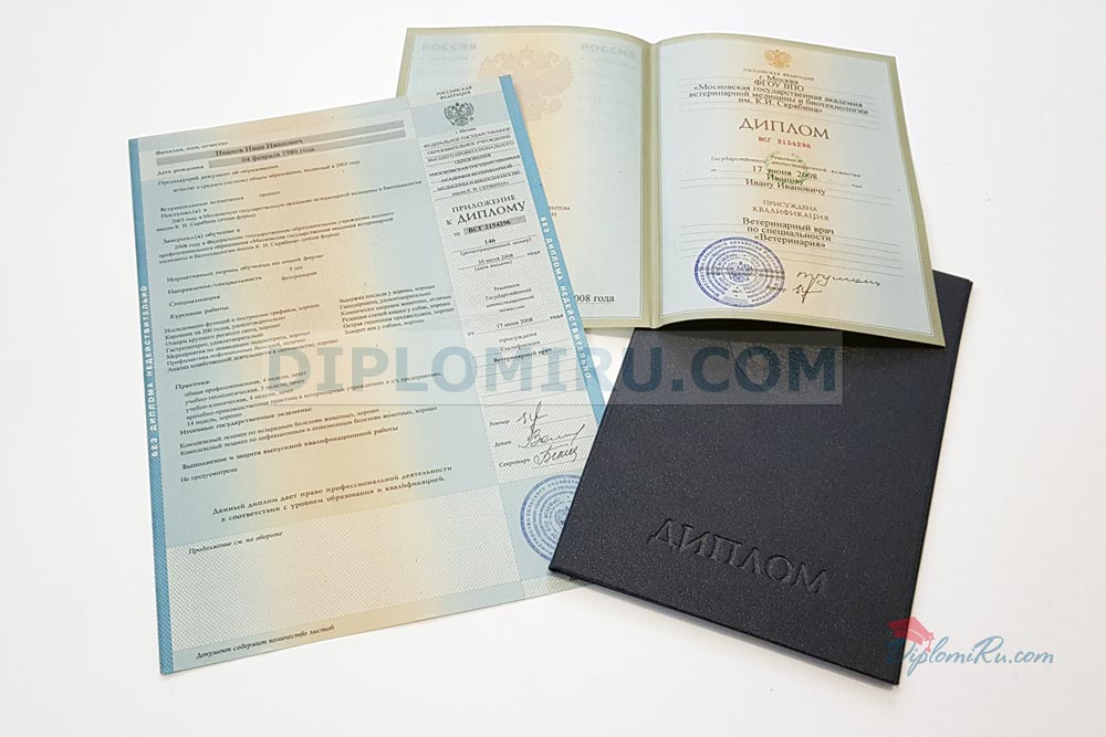 Диплом об окончании ВУЗа период с 2004 по 2009 года. В работе используем только настоящие защищённые бланки, которые заполняются по государственным стандартам, а также по образцам реально выданных документов. На фото выше представлены заполненные корочки - точная копия оригинального диплома, выданного одним из Московских университетов.